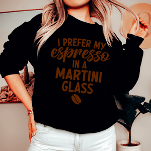 Crafted from the coziest, plush fabric, this sweatshirt envelops you in comfort that's as satisfying as that first morning sip of espresso. The statement "I Prefer My Espresso" is boldly printed, showcasing your love for the rich, invigorating brew. Whether you're making a coffee run or curling up with your favorite book, this sweatshirt adds a shot of style and humor to your casual look.