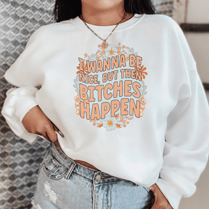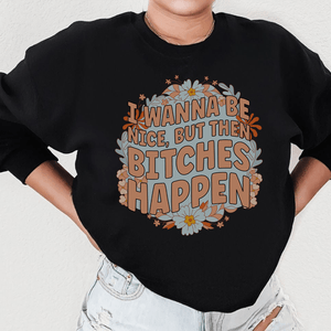 So why not make a statement in style? Grab your "I Wanna Be Nice But Then B-tches Happen" sweatshirt today and let the world know that you're a force to be reckoned with, and you're not taking any nonsense! 💪😉