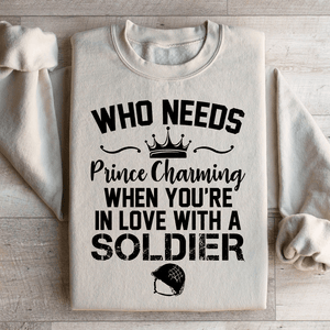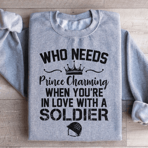 With its touching message, you'll not only stay warm but also wear your love and pride for your soldier with style. It's not just a sweatshirt; it's a declaration that love knows no boundaries and that heroes don't always wear capes. Grab your "Who Needs Prince Charming When You're In Love With A Soldier" sweatshirt now and let your love story be heard loud and clear!.