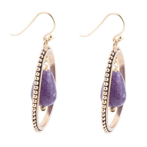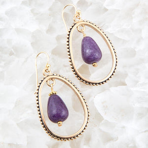 Inline Purple Jade Drop Golden Earrings
