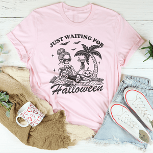 Get into the spooky spirit any time of the year with this women’s T-shirt that’s both playful and bold: "Just Waiting For Helloween." It's the perfect tee for those who count down the days until the pumpkins are carved and the costumes come out.