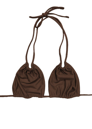 Dive head first into this Kai Triangle Top X Espresso. Crafted with luxurious, buttery soft fabric made from sustainable recycled plastic, you won't want to take this sustainable bikini top off. Style it any way you want, whether you're heading to the beach or the pool, this is one stylish top you'll love to flaunt.