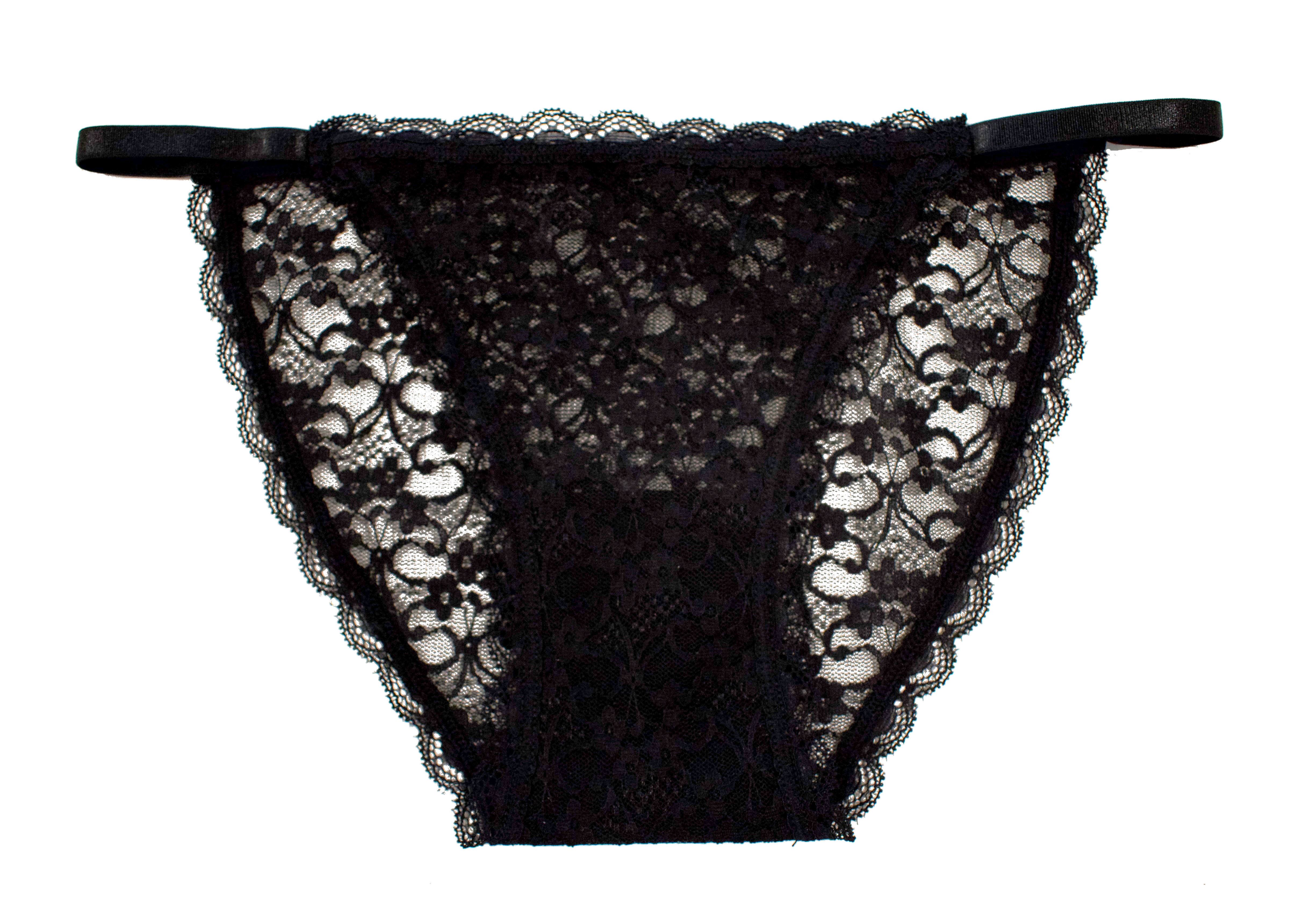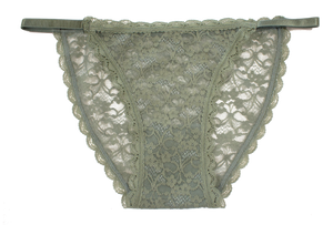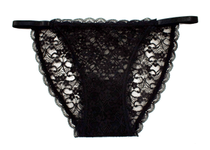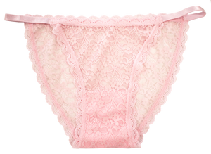 Pretty lace bikini with elastic at the hip. Cotton crotch. Extended sizing available in some colors.