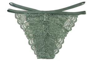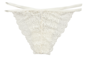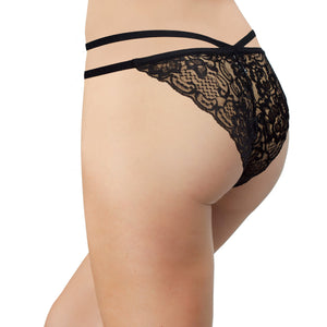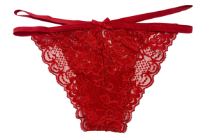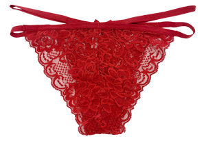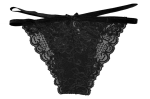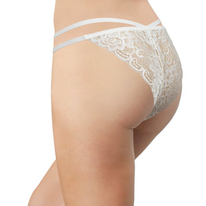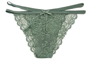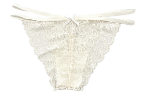 Pretty lace cheeky with a ruched rear and elastic at the hip. A pretty petite bow on the front ties the whole look together. Some sizes available in XS-2X