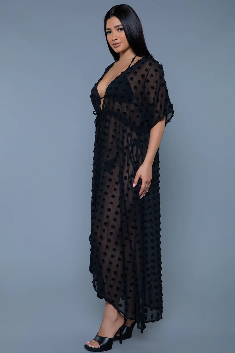 The Laila Cover-Up Maxi Dress combines elegance and comfort in a chic, kimono-style design. Featuring a plunging V-neckline and flattering loose fit, this dress is perfect for layering over your favorite swimwear. The short dolman sleeves and front tie adjustable empire waist offer a customizable fit, ensuring you look and feel your best. Made from 100% polyester, this lightweight, breathable cover-up is perfect for sunny days at the beach or poolside. With its versatile and sophisticated design, the Laila Cover-Up Maxi Dress is a must-have for effortless beachside style.