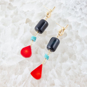 Add a beautiful, vibrant splash of color to any outfit with these stunning Lapis and Coral Post Drop Earrings! Handcrafted from genuine Turquoise Magnesite, Coral and Gold-Tone Metal, these linear earrings hang 2.75" from ear posts. Enjoy the striking combination of red and blue! Lightweight and delicately crafted, these earrings weigh only .23 oz! 🤩