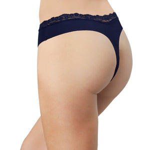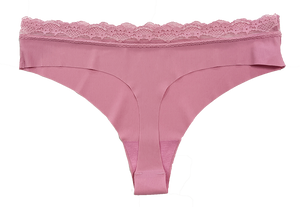 Laser Cut Rib Thong with Lace Waist, XS-2X