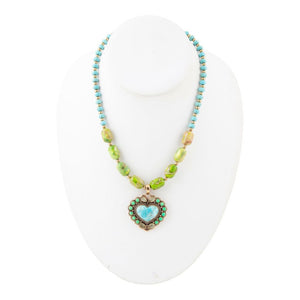 Legacy Heart Lime Green and Blue Turquoise Golden Pendant Necklace