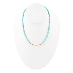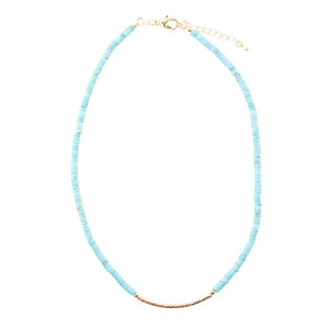 Show off your style with this stunning Little Bit Turquoise Necklace. Crafted from genuine turquoise magnesite beads and gold-plated brass metal, this necklace features a 17" chain with a 2" extender, a lobster clasp closure, and a 3mm beaded design. Weighting just 0.4 ounces, this necklace is handcrafted and finished with a turquoise and gold color palette.