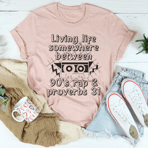 Living Life Somewhere Between 90's Rap And Proverbs 31 Tee