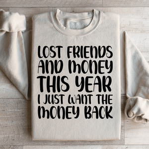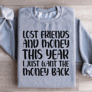 Whether you're reflecting on life's twists and turns, sharing a laugh with friends, or simply making a bold fashion statement, our "Lost Friends And Money" sweatshirt lets you do it with style. Show the world that you're ready for a fresh start. Get yours now and wear your resilience and humor proudly!.