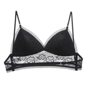 Crafted from a soft, breathable acrylic-spandex blend, this bra offers a lightweight, second-skin feel, making it perfect for all-day wear. The intricate lace detailing adds a sensual, feminine touch, while the Y-line halter straps create an elegant, secure fit. With no closure, this bra provides a smooth, seamless look under any outfit.
