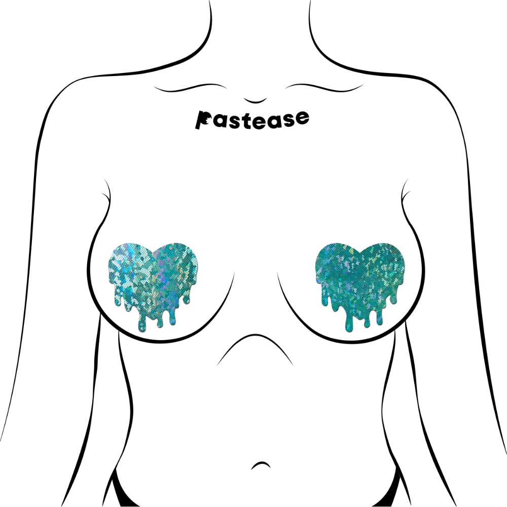 Melty Heart: Melty Heart Nipple Pasties by Pastease® o/s are hand-made in the USA of soft form-fitting glittery material that forms seamlessly to curves and resists wrinkling over hardening nipples.