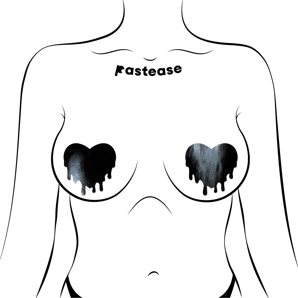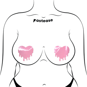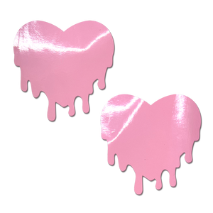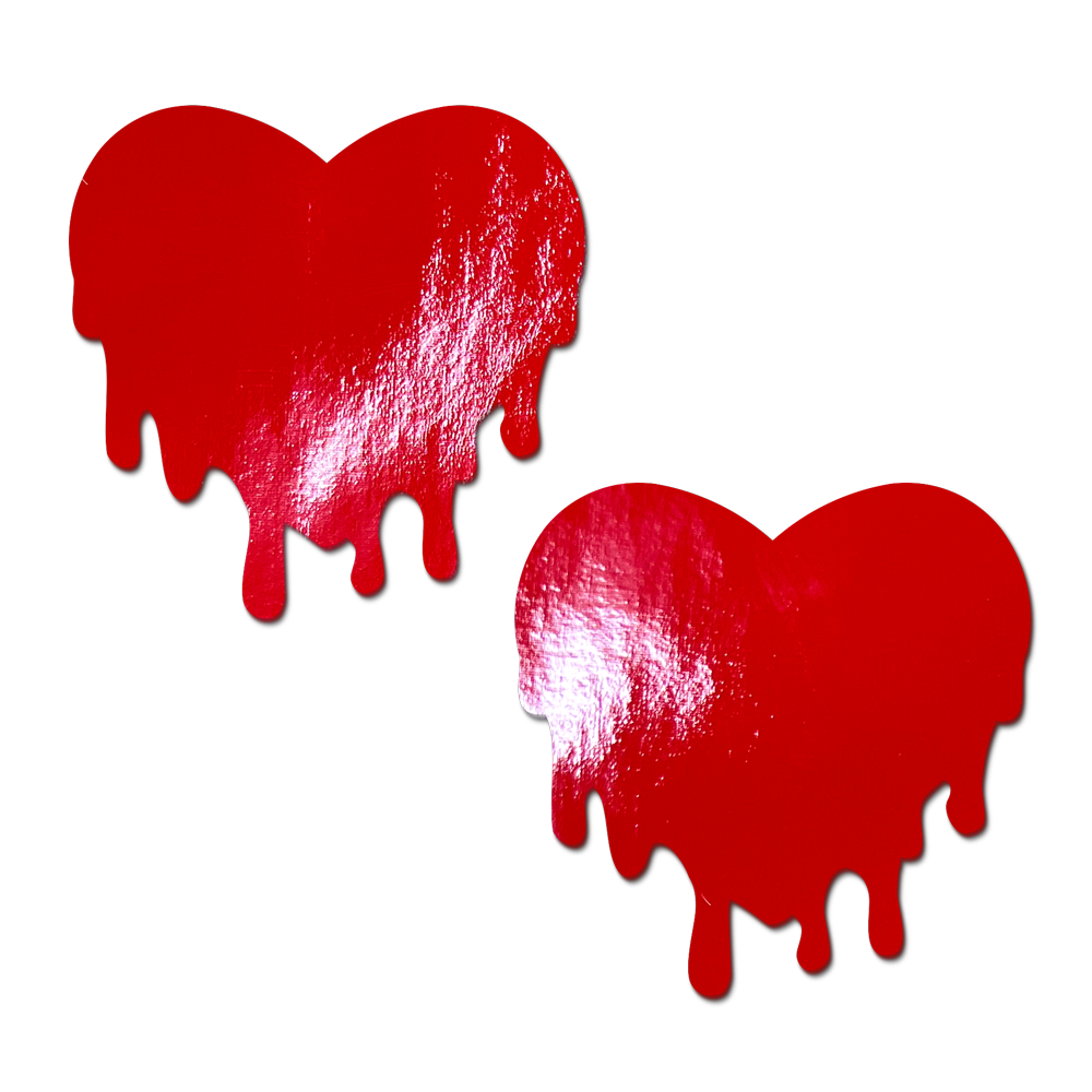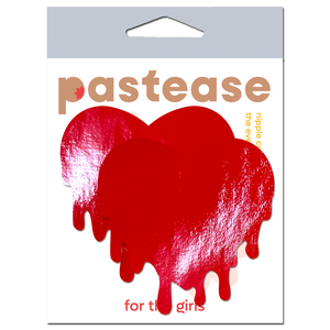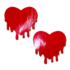 - Immerse yourself in the allure of our Melty Hearts Pasties, featuring a unique dripping heart design that adds a romantic and playful touch to your lingerie collection. The high-quality faux latex pleather vinyl ensures a visually stunning appeal.