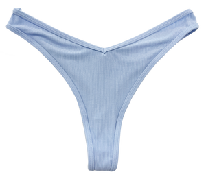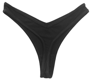 Super soft modal V-front thong. Available in black, orange, blue, and green.