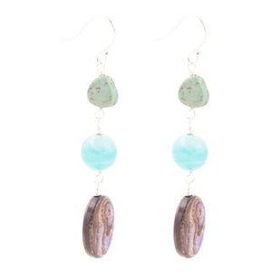 Multicolor Abalone and Blue Magnesite Sterling Silver Drop Earrings