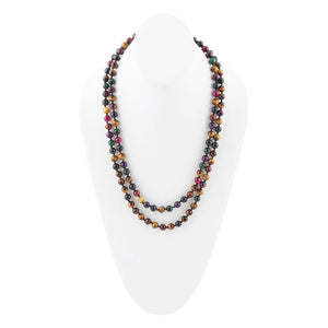 This handcrafted necklace features vibrant multicolor tiger's eye beads, measuring 24" long with a .25" width. The total weight is 3.57 oz, providing a lightweight yet eye-catching accessory. Each bead is skillfully crafted and hand-finished, making this a truly unique piece.