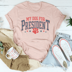 Show your support for the ultimate candidate with our "My Dog For President" T-shirt. This tee is a fun choice for dog lovers and those who appreciate a bit of political humor. It’s not just a shirt; it’s a campaign statement for more wagging tails and fewer debates, promoting loyalty, joy, and unconditional love in every policy.