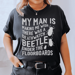 Say hello to our "My man is making me wish there was a deathwatch beetle under the floorboards". You know those days when your man makes you wish there was a deathwatch beetle under your floorboards? Yeah, we've got a shirt for that!