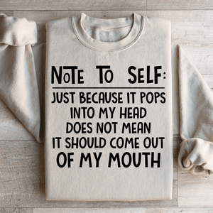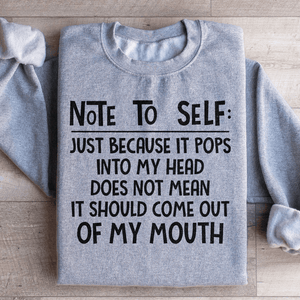 Whether you've had your fair share of foot-in-mouth moments or simply appreciate the importance of filtering your thoughts, our "Note To Self" sweatshirt lets you wear your self-awareness with style. Grab yours today and rock your commitment to thoughtful expression..
