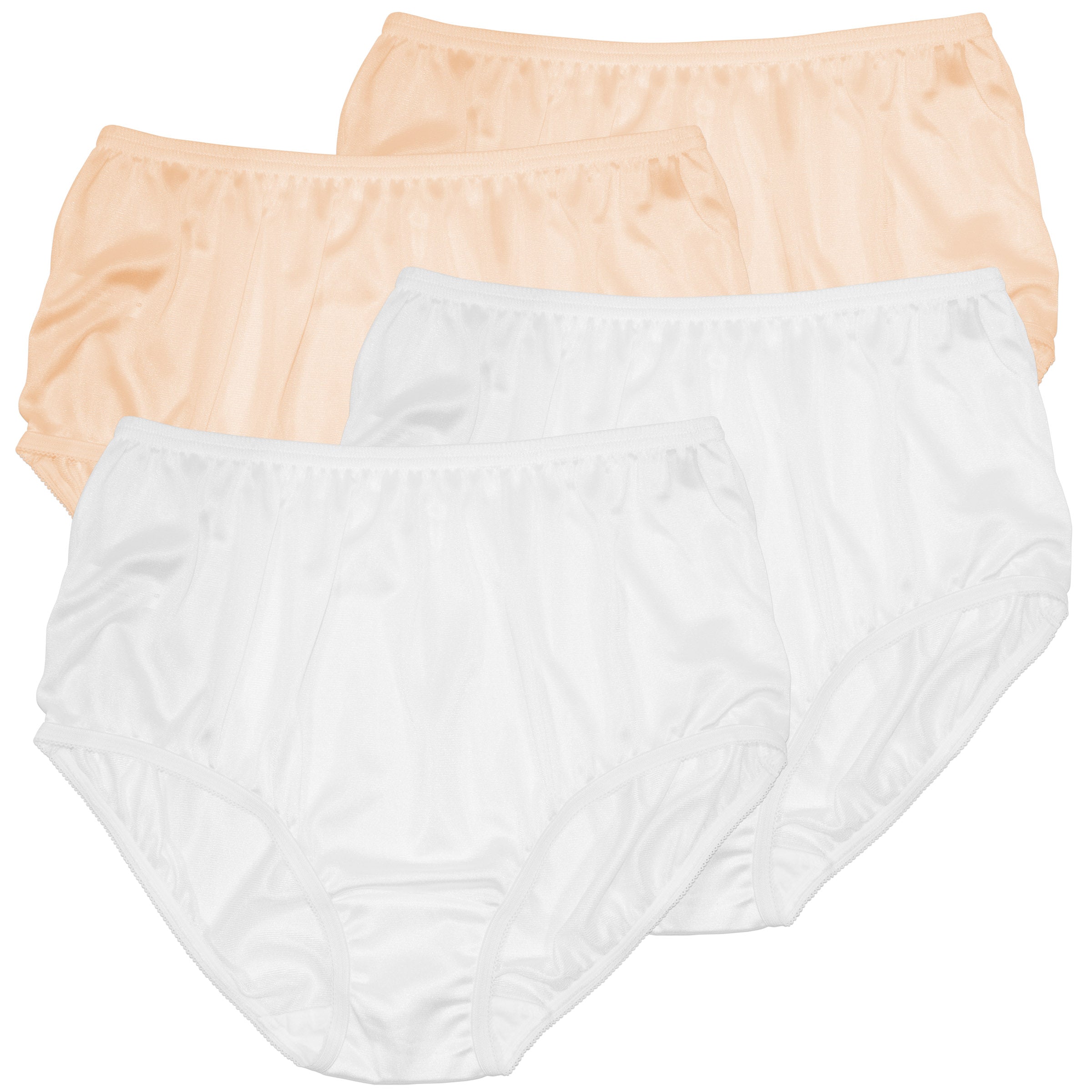 Nylon Brief Panty (Style 331/Plain Jane) 4 Pack in White and Beige