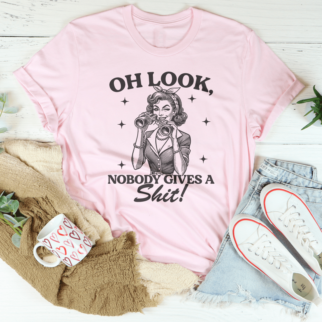 Embrace your bold side with the "Oh Look Nobody Gives A s-it" T-shirt. Perfect for those days when you're feeling a bit sassy and utterly unapologetic. The crisp, white lettering on a classic black background ensures your message can't be missed, while adding a touch of daring to your daily ensemble.