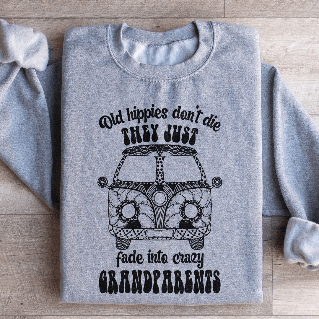 Don't miss the chance to wear your hippie heritage with pride! Get your "Old Hippies Don't Die" statement sweatshirt today and let it be your go-to attire for channeling the enduring optimism of a bygone era. Grab yours now and spread the good vibes in style. Shop today and keep the peace and love alive!