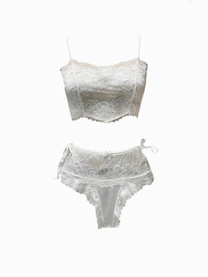This set is perfect for anyone looking for something feminine to wear all day without any hardware or wires. Its elastic-free fabric and cording straps provide an incredibly supportive fit, while the stretchy floral lace ensures maximum comfort. Unlike other tops, it is so comfortable you won't want to take it off.