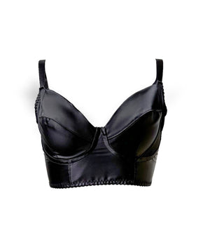 Indulge in the comfort and versatility of our Paradox Underwire Longline Top Dra. Crafted from smooth stretch heavy satin, this underwire bra in alpha sizing (S, M, L, XL) provides both support and sensuality with its push up and wide straps. The long line length and wide back closure, along with the elegant gold hardware, give a supportive and alluring neckline.
