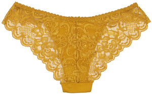 - A delicate scalloped lace backside and a soft, breathable microfiber front panel. Shows off a little bit of cheek-- but not too much.