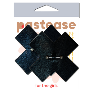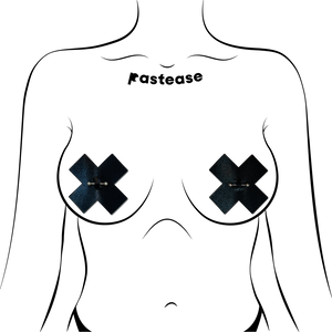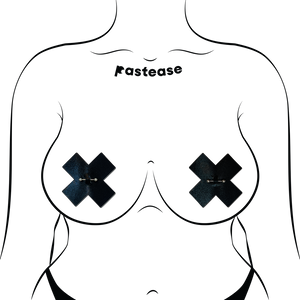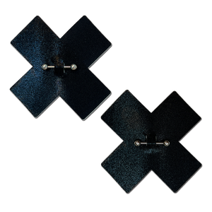 Pierced Pasties: Liquid Black Cross Plus X with Barbell Piercing Nipple Covers by Pastease®