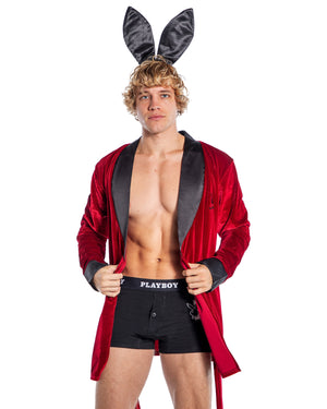 Indulge in ultimate relaxation with the Playboy Men’s Smoke Lounge Robe, designed to bring you the perfect blend of plush comfort and classic Playboy sophistication. Crafted from rich velvet and adorned with the signature Playboy Bunny logo embroidery, this robe is a statement piece for the modern man who values both style and luxury.