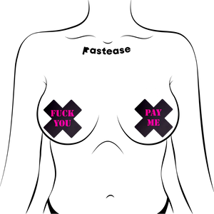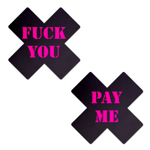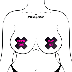 Plus X: Black with Pink 'Fuck You, Pay Me' Cross Nipple Pasties by Pastease®