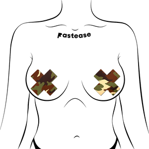 Plus X: Green Camo Cross Nipple Pasties by Pastease®