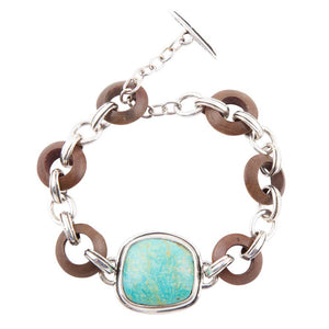 Precious Turquoise and Wood Sterling Silver Toggle Bracelet
