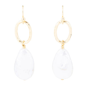 Hand-crafted and carefully finished, these Golden Drop Earrings feature a stunning oval of brass and a dangling white pearl stone. With a length of 2 inches and a widest point measuring at 0.50 inches, these earrings weigh a total of 5.64 grams. Add a touch of elegance and luxury to your collection with these Pretty Drops of Freshwater Pearl Golden Drop Earrings.