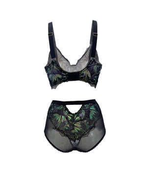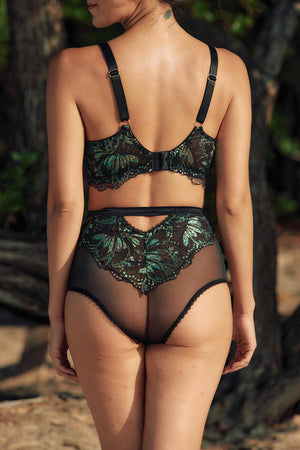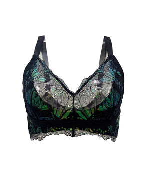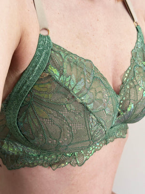 Crafted with the most magical and luxurious iridescent stretch lace, the Psyche Iridescent Lace bralette comes in standard and boost sizing. Both options feature a soft wireless half lined soft cup and elastic detail that creates the illusion of an underwire.