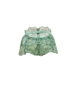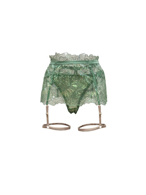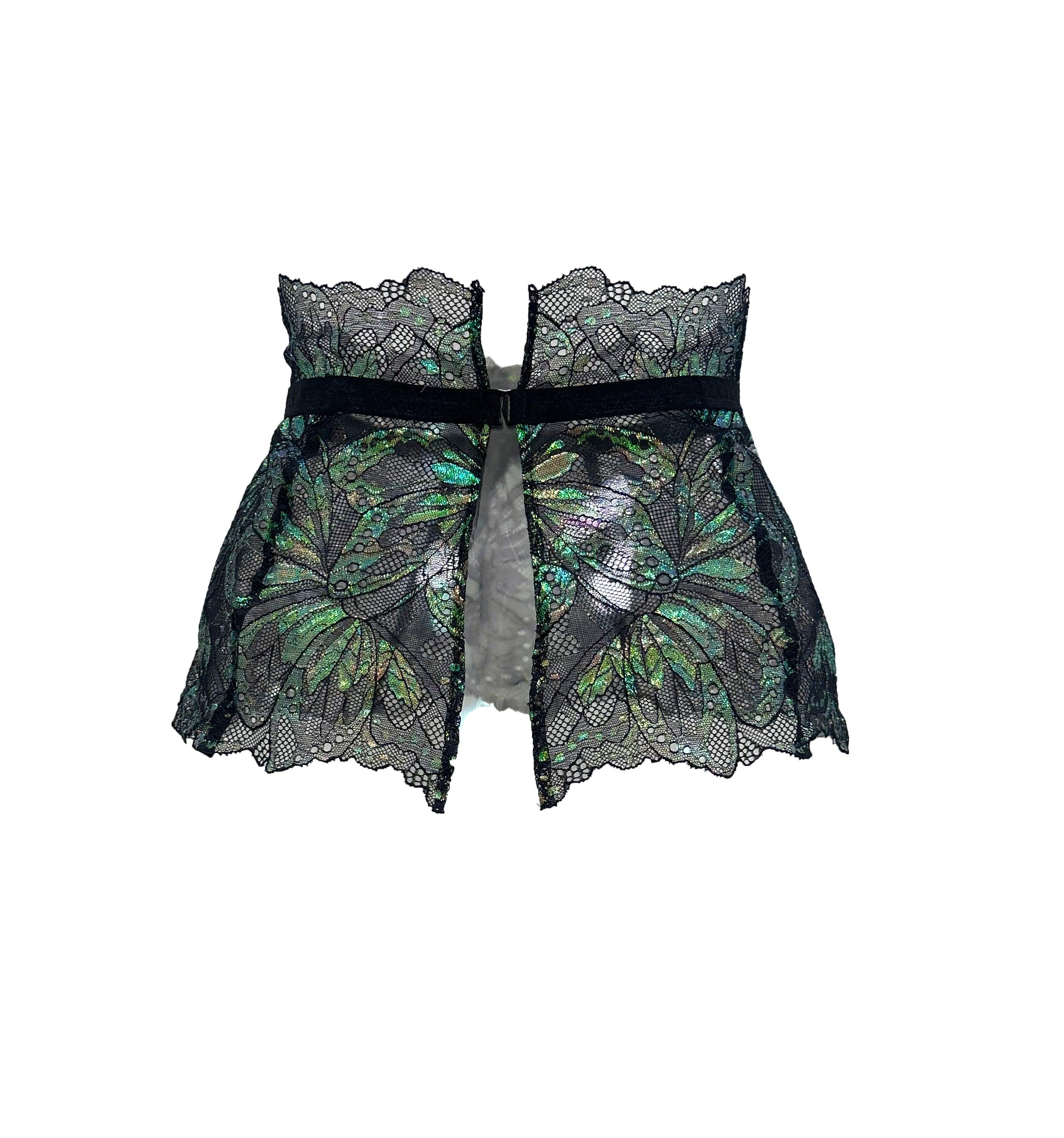 The Psyche Garter Skelt is a versatile piece of lingerie to upgrade your wardrobe, adding a touch of elegance to any outfit. Made of iridescent lace, this A-line garter belt can be worn over panties or as outerwear over a dress or pants. With its peplum skirt design, it comes in both black and green options.