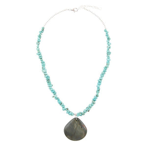 Pueblo Blue Turquoise Magnesite and Jasper Sterling Silver Necklace
