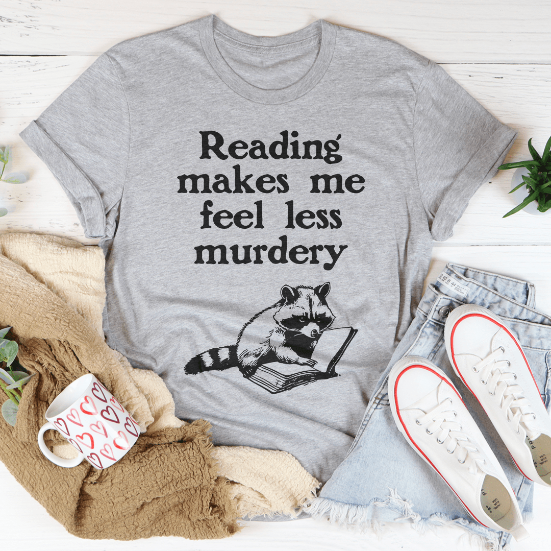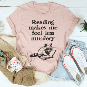 “Reading Makes Me Feel Less Murdery” — because sometimes the only thing standing between you and a full-blown meltdown is a good plot twist and a quiet corner.