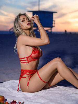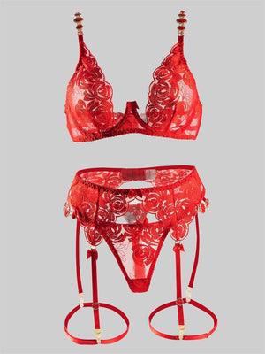 Embrace allure in our red lingerie with sensual rose embroidery. Irresistible and adorned with exquisite diamond accessories, this ensemble exudes pure sophistication. Elevate your style and captivate with the perfect blend of luxury and sensuality.