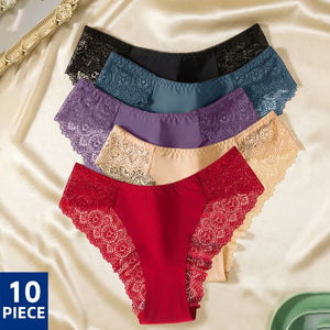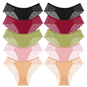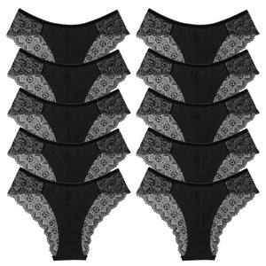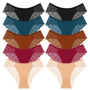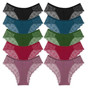 Discover ultimate comfort and timeless elegance with this Sandra Lace Panty Value Pack (10-Pack), designed to elevate your everyday essentials. Crafted from a premium blend of 90% Nylon and 10% Elastane, these panties offer a soft, stretchy fit that feels luxurious against your skin. The low-rise design provides a flattering, modern silhouette, perfect for pairing with any outfit. Featuring delicate lace details and a classic solid color pattern, each pair strikes the perfect balance between simplicity and sophistication. Made with a durable polyester and spandex composition and knit for a snug yet breathable feel, this set is ideal for women seeking both style and comfort in their lingerie collection.