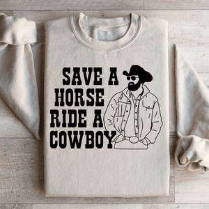 Don't miss out on the chance to saddle up and make a statement. Grab the "Save A Horse Ride A Cowboy" sweatshirt today and let your cowgirl spirit roam free. It's not just clothing; it's a statement piece that says, "I'm ready for a wild ride, cowboy hat optional!".