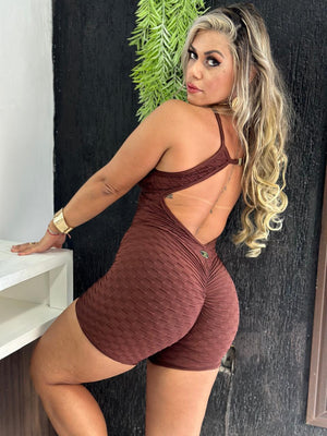 The SCRUNCH BOOTY BROWN WAVE DROP SHORT JUMPSUIT