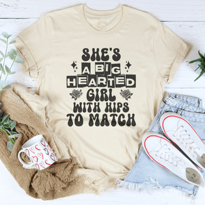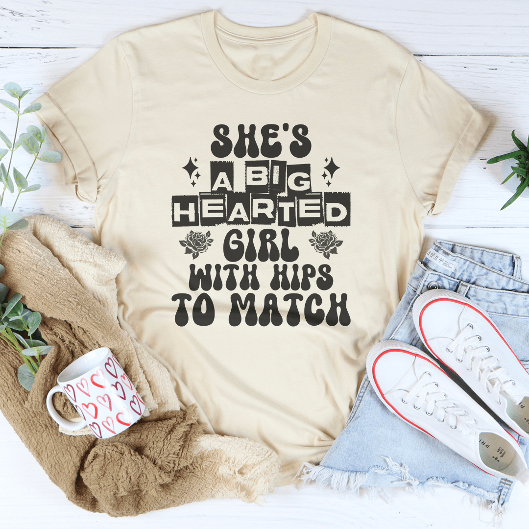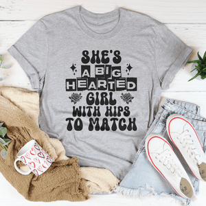 Celebrate your curves and your generous spirit with this flattering women’s T-shirt that boasts, "She's a Big-Hearted Girl with Hips to Match." It’s the perfect choice for anyone who takes pride in both their compassion and their silhouette.