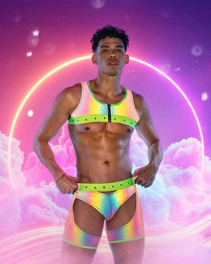 Introducing Shine Bright Reflective Briefs: the ultimate rave essential! Designed for those who shine on the dance floor, these briefs illuminate under lights, making you the center of attention. Comfortable, stretchy fabric ensures freedom of movement while the reflective material guarantees you'll stand out in any crowd. Elevate your festival style and light up the night with Shine Bright Reflective Briefs