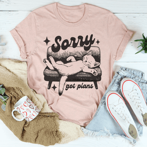 Introducing the ultimate excuse in style form: our "Sorry, Got Plans" T-shirt. This cheeky piece is for the independent soul with a packed schedule or, let’s be honest, anyone who simply enjoys a good night in. It's the perfect blend of humor and honesty, making it a must-have for your casual wardrobe.