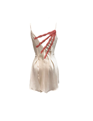 Experience lightweight luxury with our Splash Silk and Viscose Wrap Nightie. Made with a silk viscose blend, it features a flattering A line skirt, V neck, adjustable spaghetti straps and delicate lace detailing for a touch of elegance. With a wrap closure and tie details, it can also be worn as a dress for those sunny summer days. Elevate your bedtime routine and show off that tan skin with this versatile and stylish nightie.