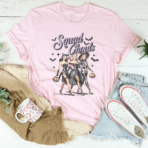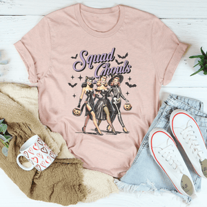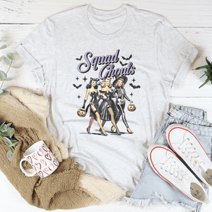 Get ready for spooky season with our "Squad Ghouls" T-shirt, a playful nod to those who love celebrating Halloween with their closest friends. This tee is perfect for ghostly gatherings, haunted house adventures, or just a fun night out during the fall festivities. It's not just a shirt; it's part of your costume and a celebration of all things eerie.