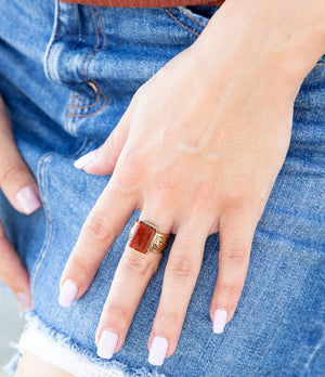 Stamped Orange Carnelian Golden Ring